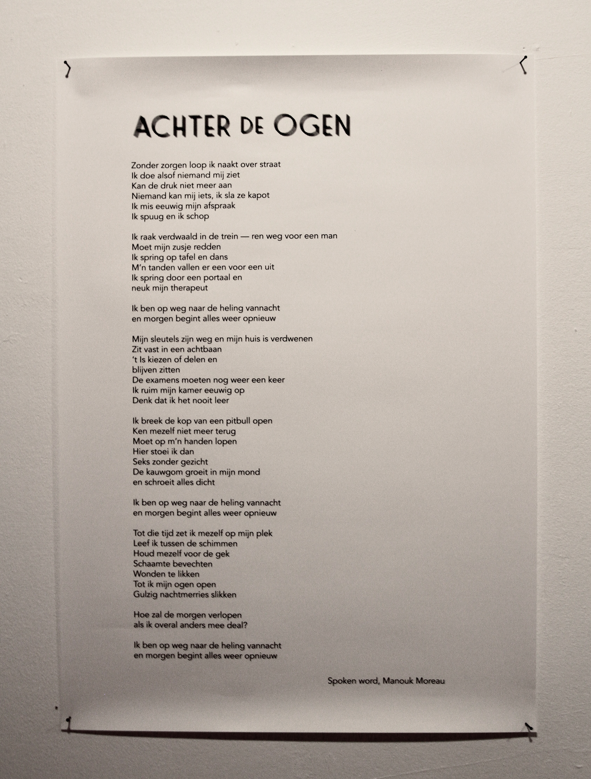 During the opening the exhibition Leroy Sickboy and Manouk Moreau performed a live soundscape/spoken word piece about dreaming.